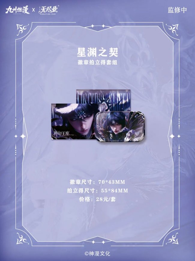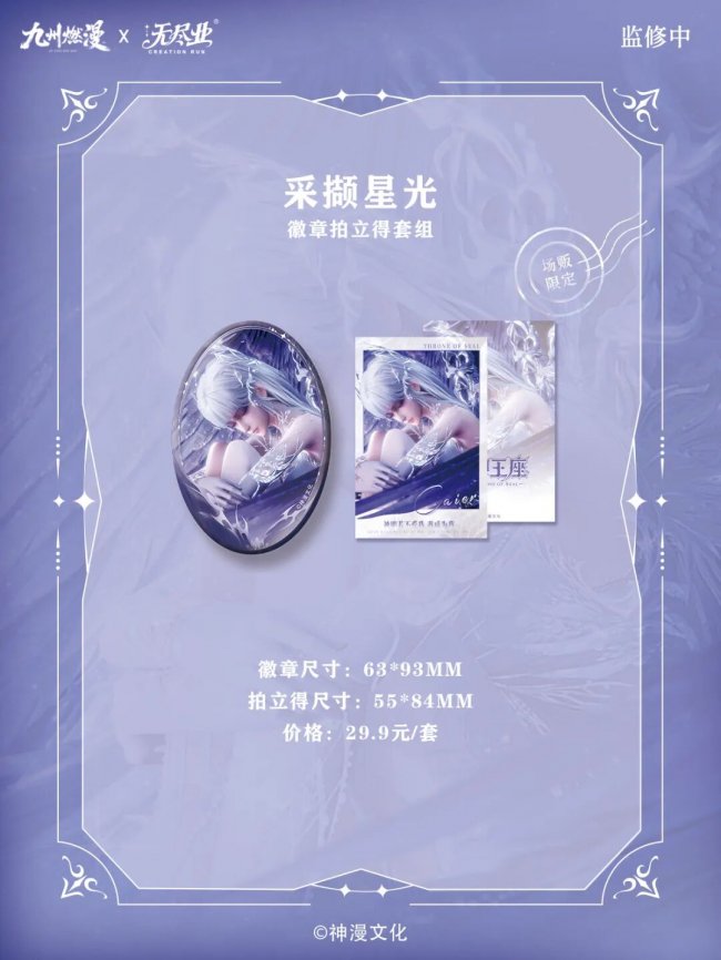 比如《神印王座》的限定场贩“采撷星光”徽章拍立得套组,《沧元图》的限定场贩“燃犀”系列吧唧……