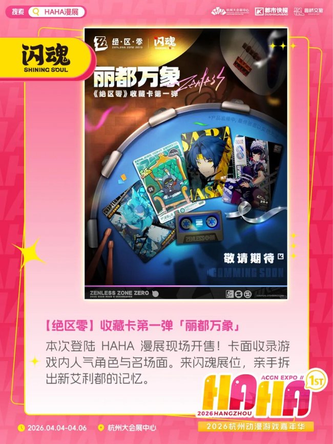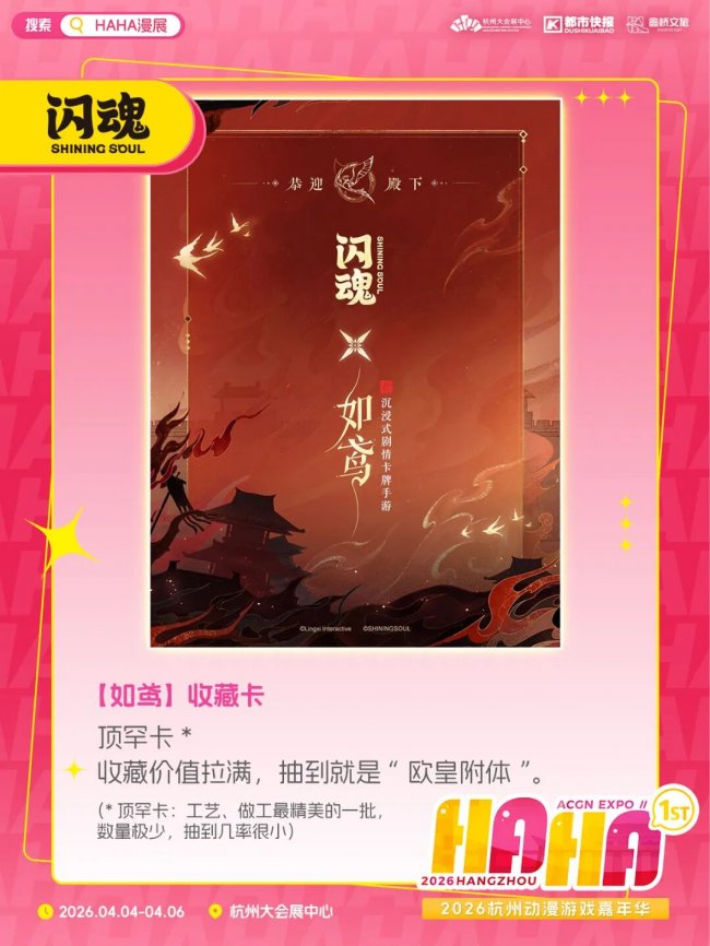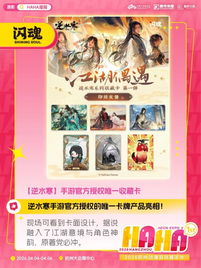 你可以来闪魂的展区试试手气,看能不能抽到《如鸢》的顶罕卡,或是亲手拆上一波《逆水寒》《绝区零》的收藏卡。