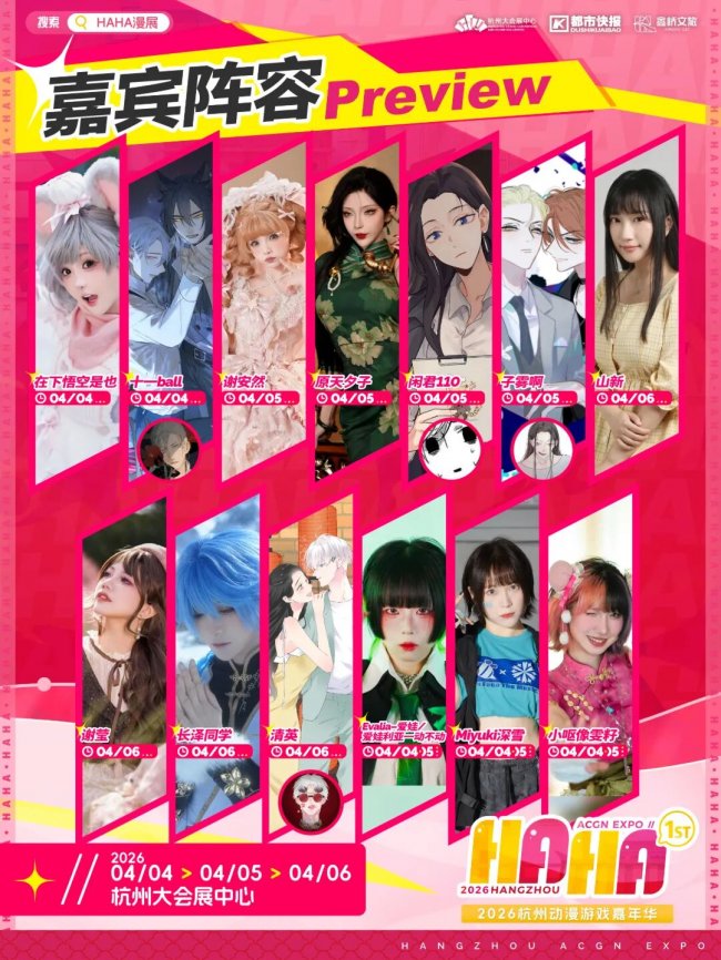 2026年杭州首场综合性大型漫展——HAHA漫展将于4月4日-6日在杭州大会展中心举行,这让杭州的二次元们又忙起来了。